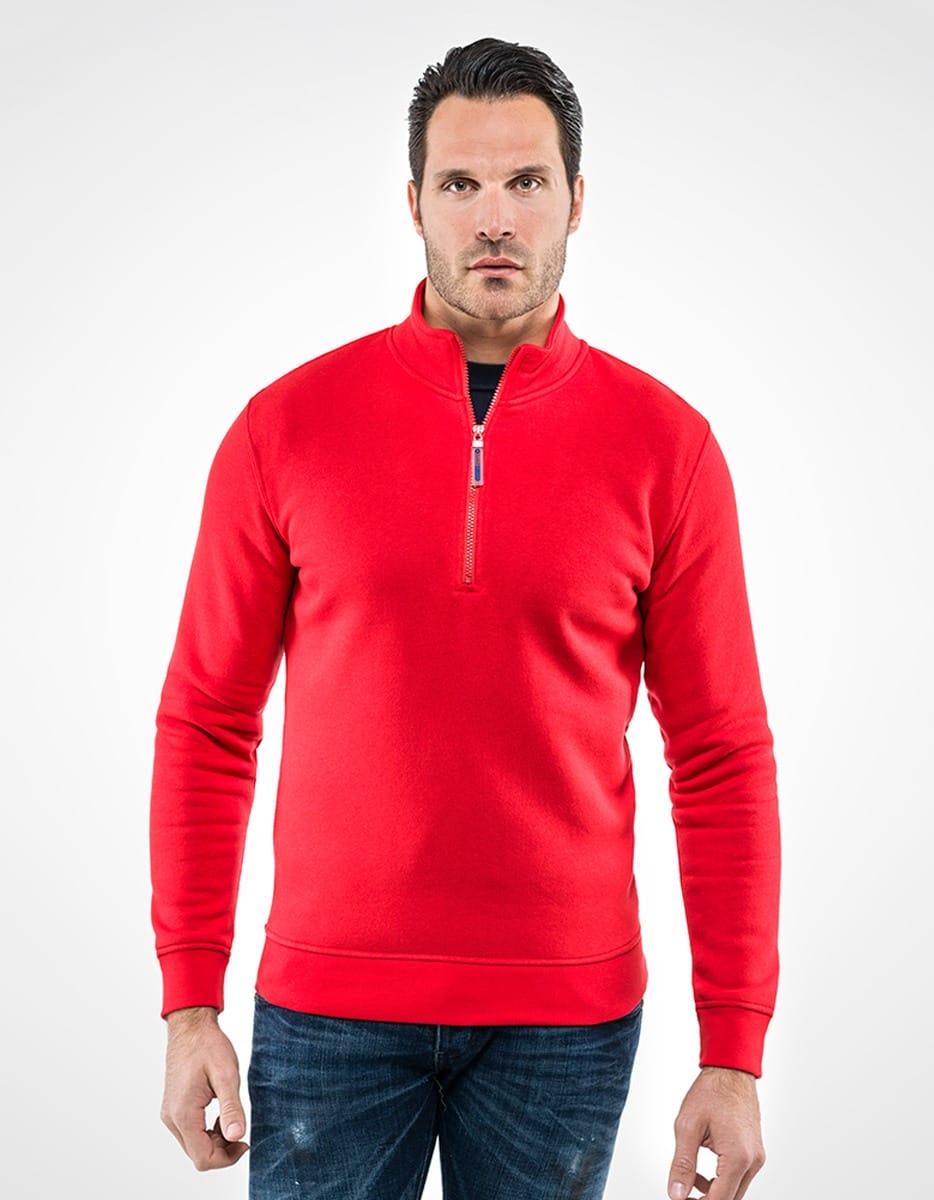 Comoda felpa a mezza zip perfetta per gli ambiti professionali. DPI 1a categoria, testata per la protezione contro le lesioni meccaniche superficiali (conforme UNI EN ISO 13688) Realizzata in 65% cotone e 35% poliestere. Fascia parasudore nella parte interna del colletto. Elastico ai polsi e in vita.