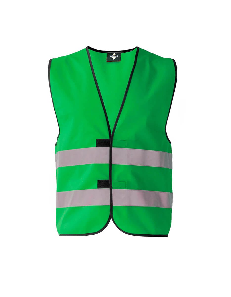 Bordi oralti in poliestere nero e fasce riflettenti di 5 cm intorno al busto.