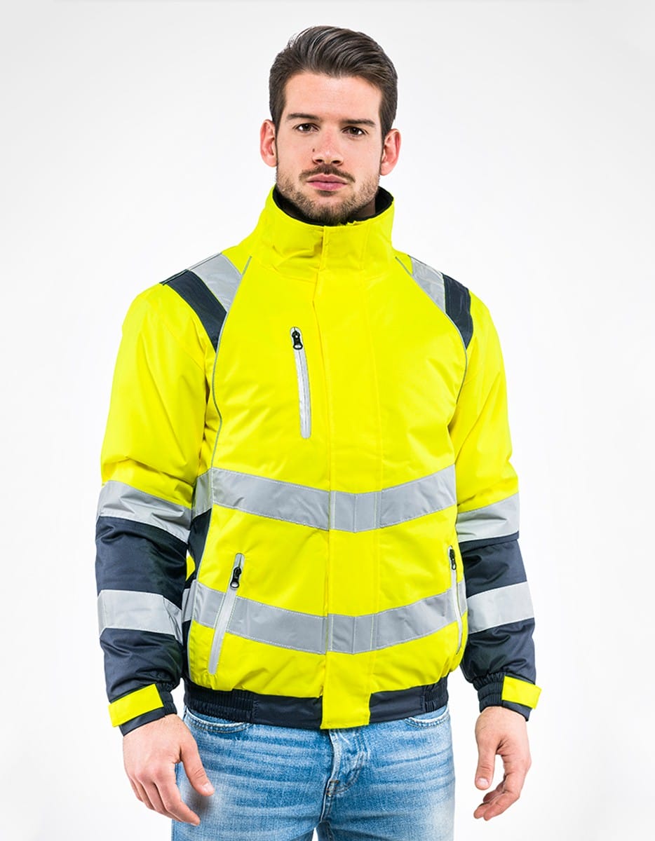 Giubbino ad alta visibilità impermeabile. Interno del colletto in morbido pile. Chiusura centrale con cerniera ricoperta da pattina con velcro. Due tasche laterali e tasca sul petto con cerniere antiacqua ricoperte da materiale riflettente. Stringipolso con chiusura in velcro ed elastico in vita. Inserti riflettenti sul collo. DPI 2a Categoria conforme UNI EN ISO 13688, UNI EN ISO 20471, UNI EN 343. 100% poliestere oxford spalmato PU.