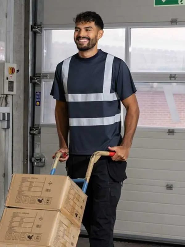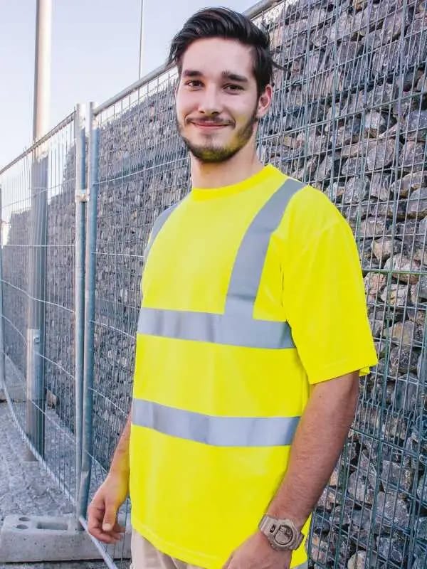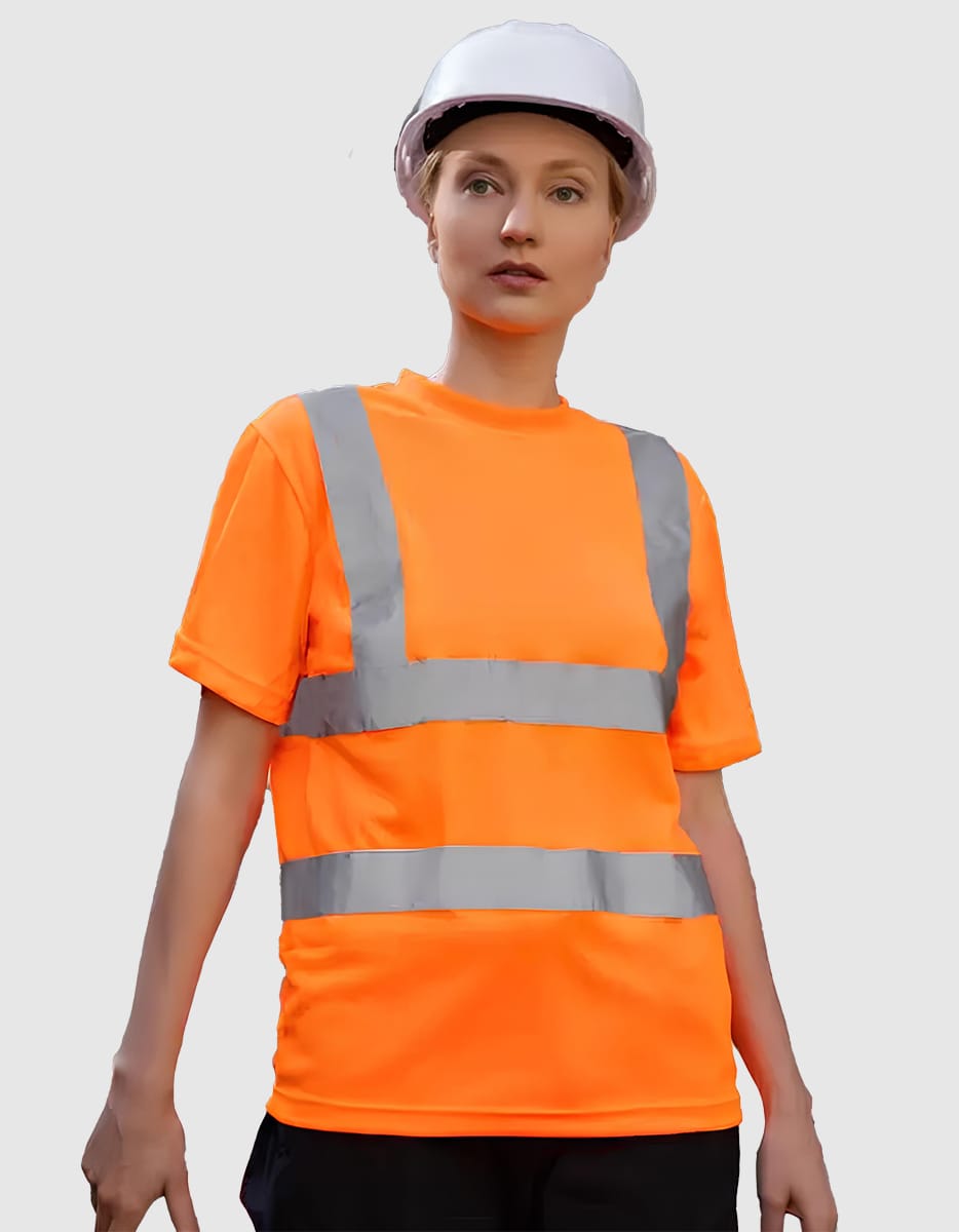 T-Shirt ad alta visibilità, certificazione EN ISO 20471:2013 + A1:2016, colore arancione conforme anche alla normativa GO/RT 3279, Oeko-Tex® Standard 100.