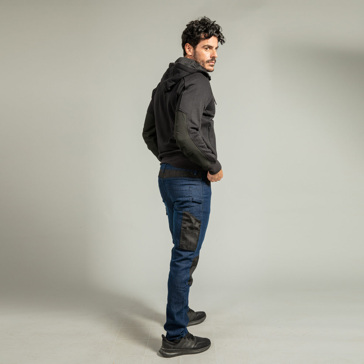 – Una tasca laterale con velcro e due taschini portaoggetti