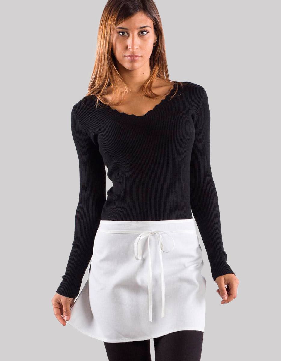 Davantino senza tasca con comoda lunga cintura, perfetta per bar e ristorazione. Made in Italy. Semplice, pratico ed elegante. Tessuto in 65% poliestere e 35% cotone (nei colori Bianco e Natural: 100% cotone). Lavabile a 40° C.