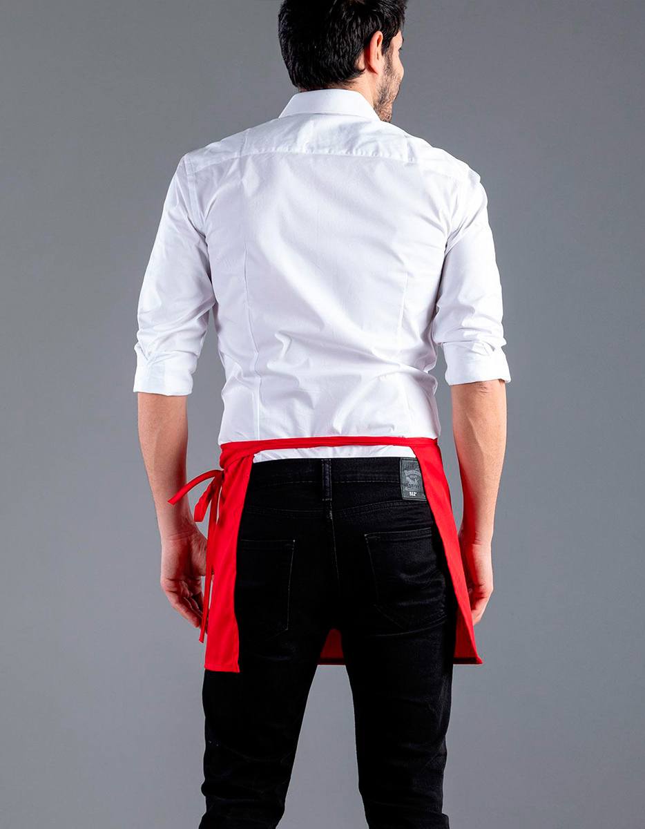 Grembiule stile bar con pratica tasca centrale e lunga cintura. Lavabile a 40° C. Made in Italy. 65% poliestere, 35% cotone (colori Bianco e Natural 100% cotone)