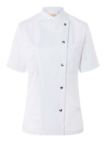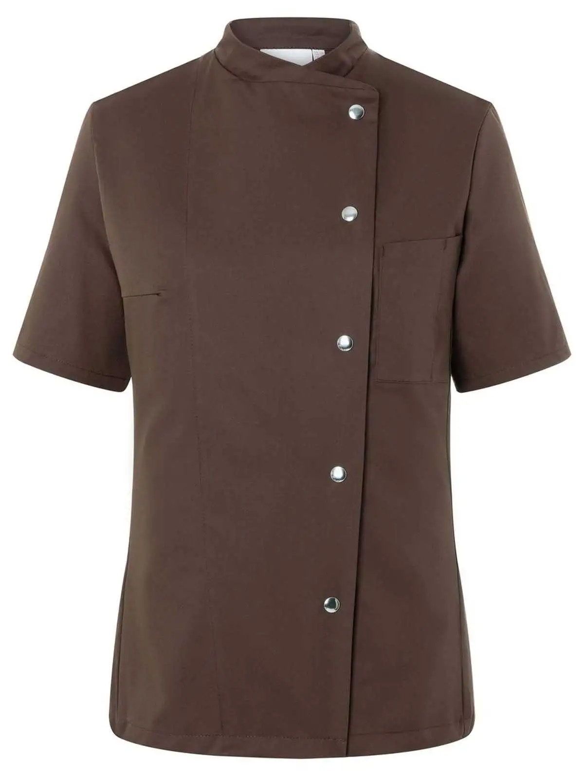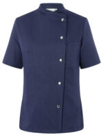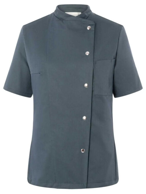 Taschino porta penne asimmetrico sul petto a sinistra, 5 bottoni a pressione, adatta a lavaggi industriali.