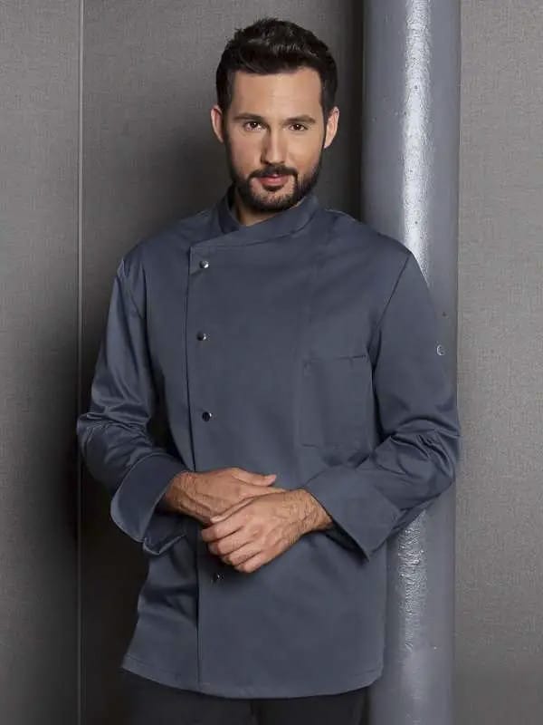 Giacca da Chef dal tessuto rifinito e irrestringibile, cuciture vienna sul retro, maniche con fessura.