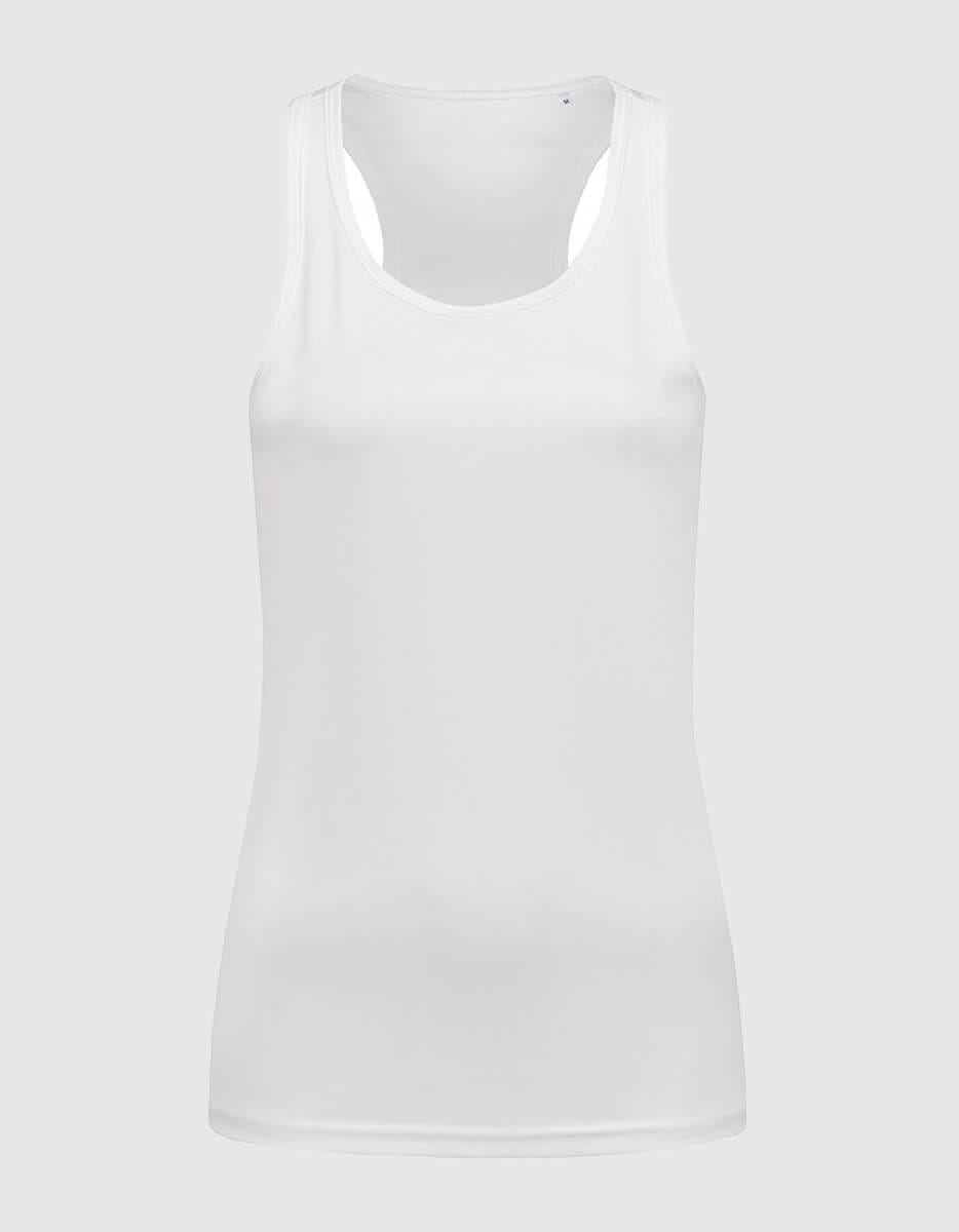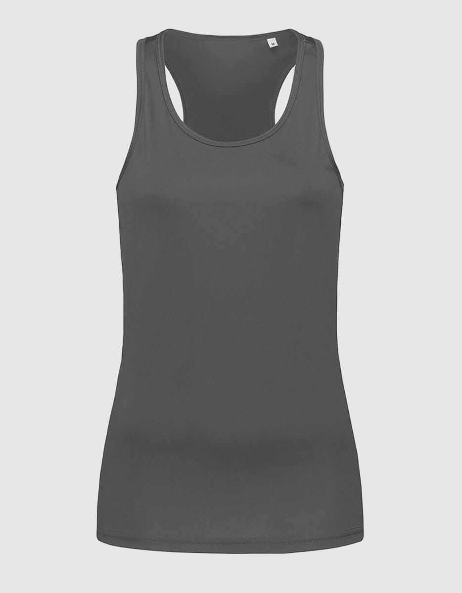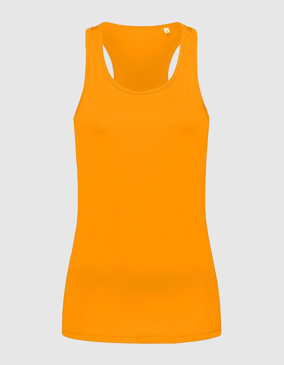 Canotta workout donna, traspirante e leggera, vestibilità slim e taglio olimpionico sul retro.