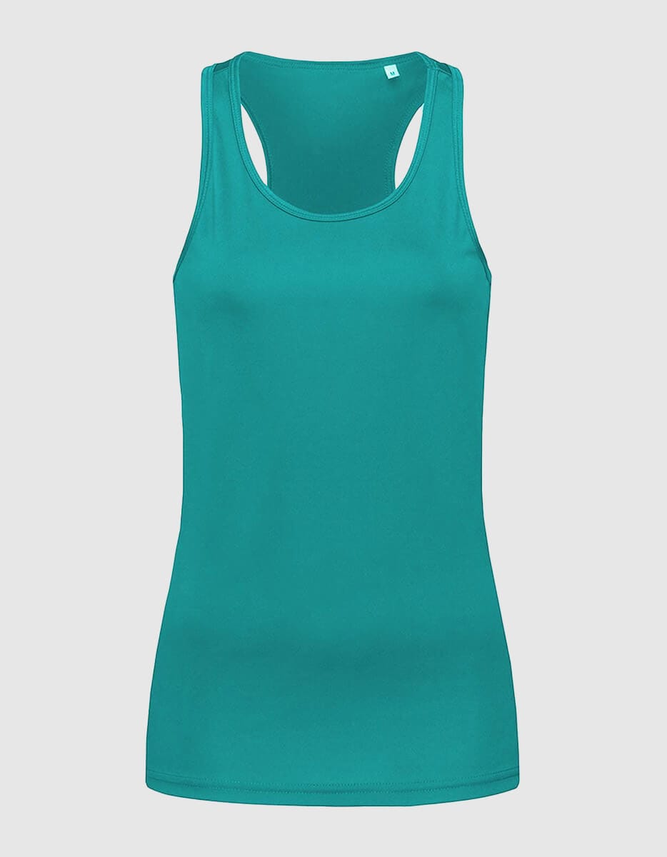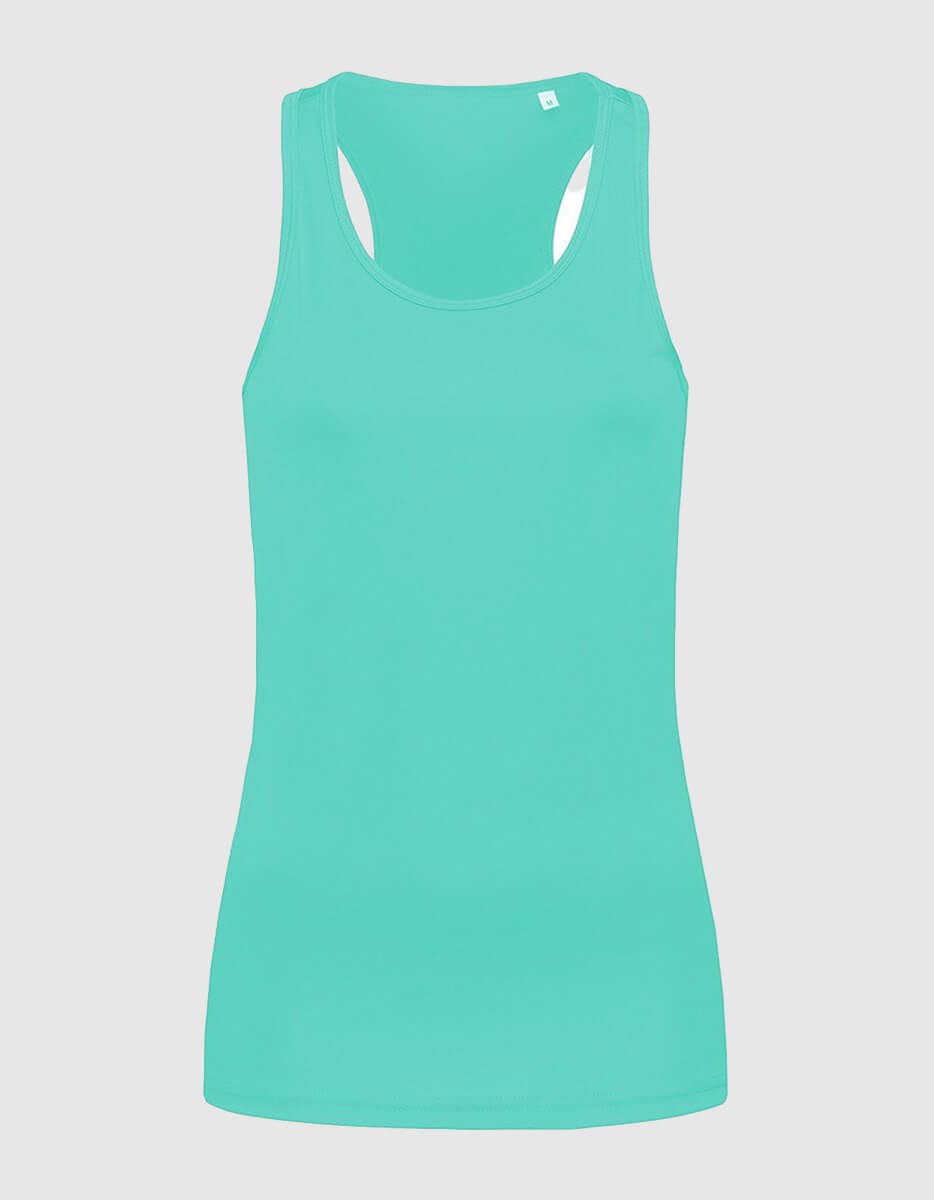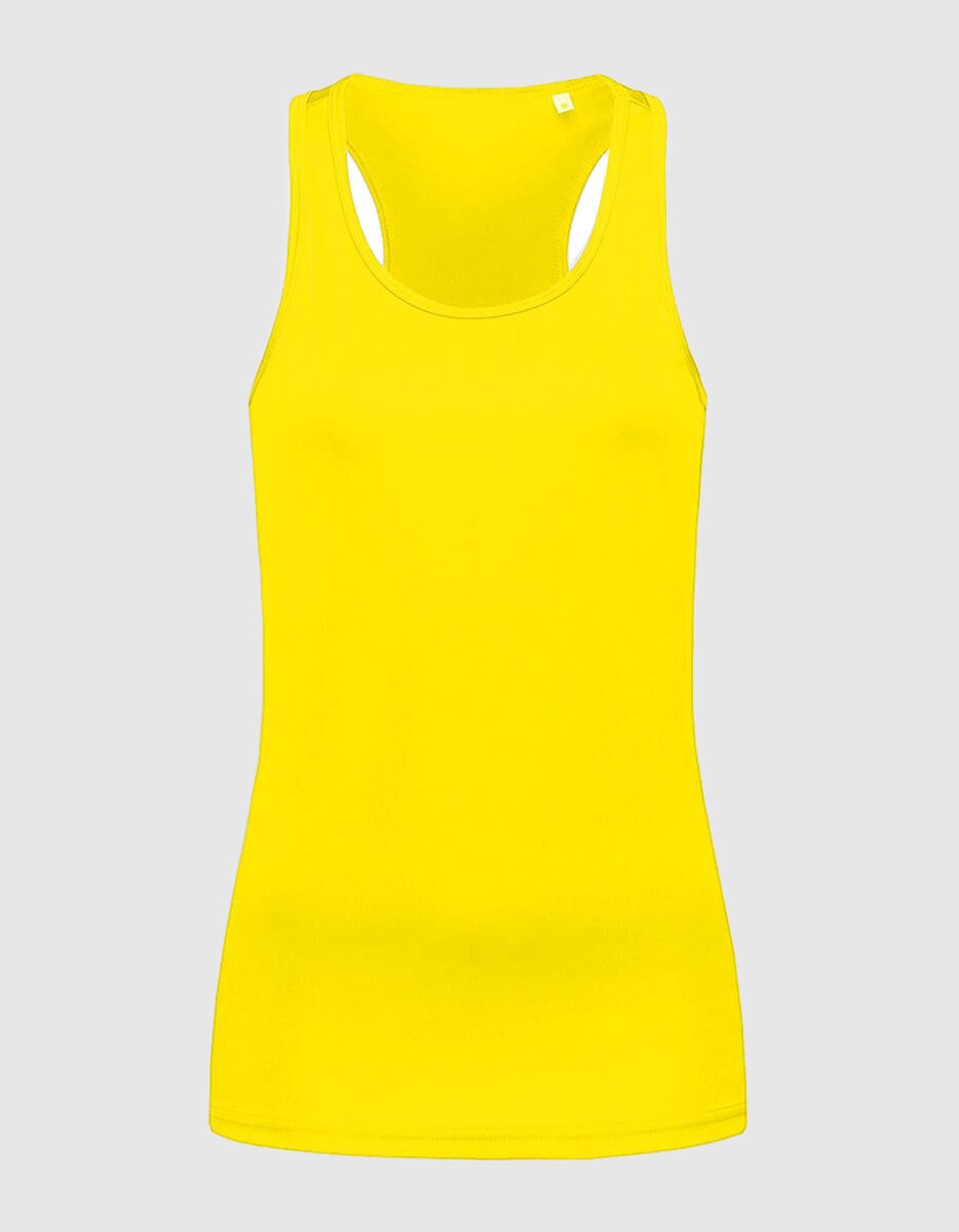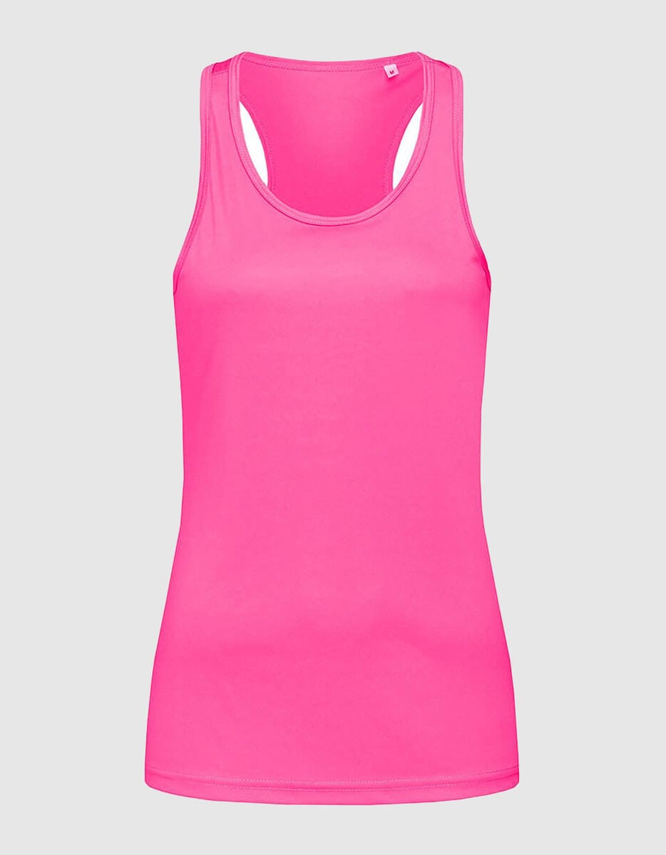 Canotta workout donna, traspirante e leggera, vestibilità slim e taglio olimpionico sul retro.
