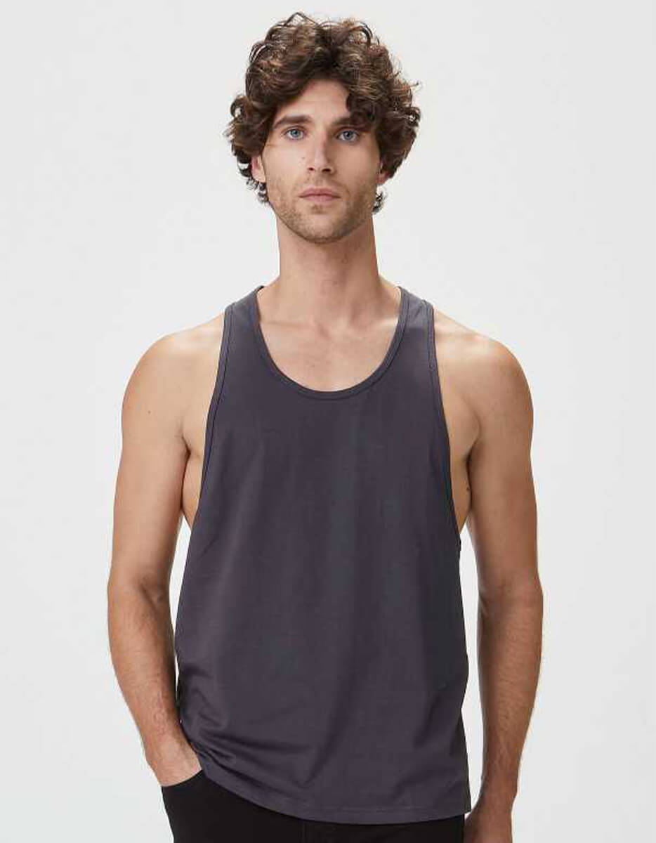 Canotta unisex ideale per sport, palestra e spiaggia con un ampio giromanica.