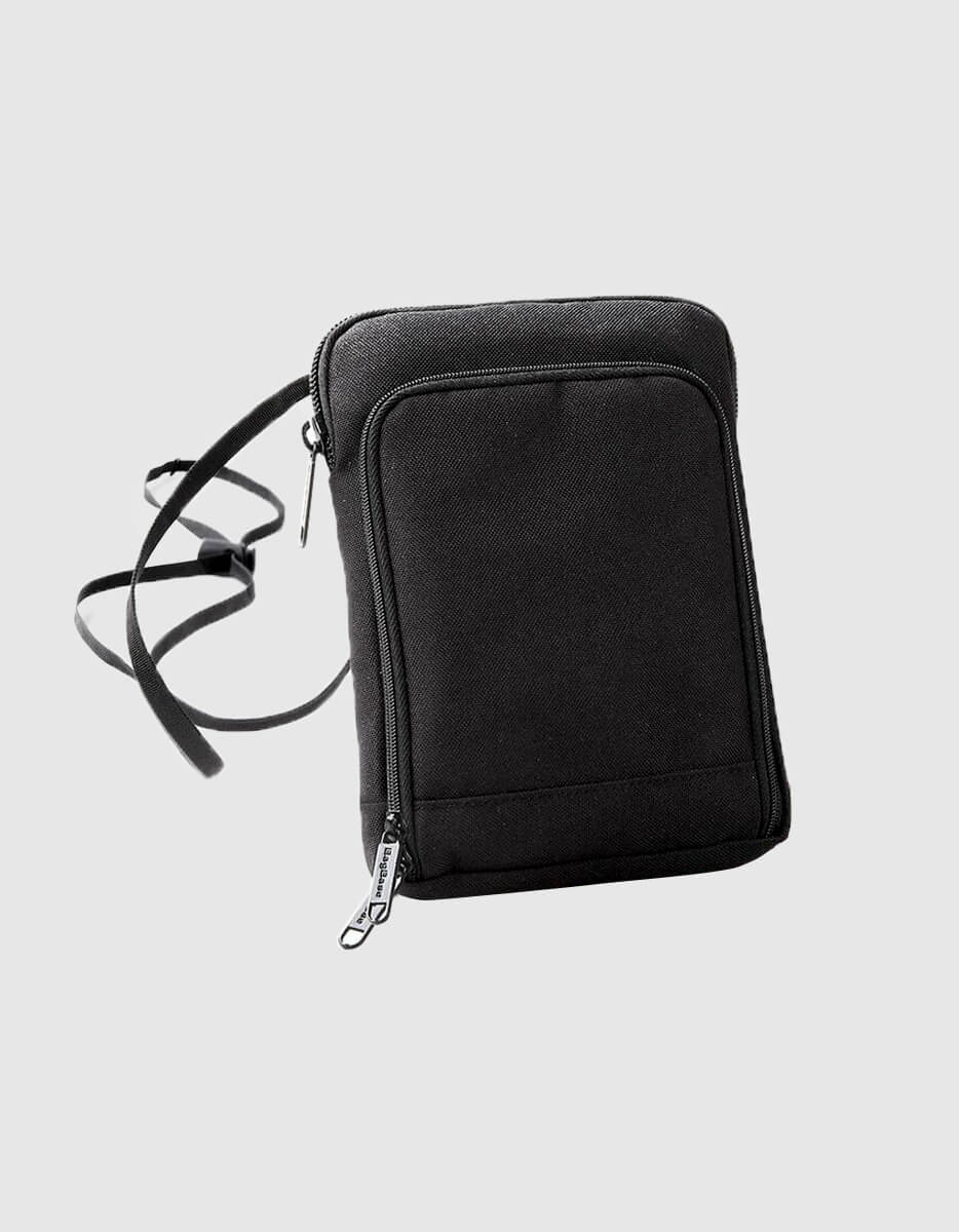 Dotato di tracolla e organizer con tasca per passaporto.