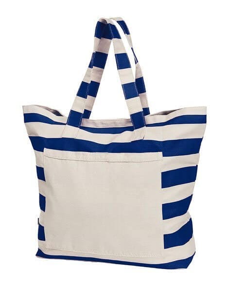 Grande borsa in cotone pesante e resistente con motivo a righe orizzontali in stile marinaresco, in 5 colori.