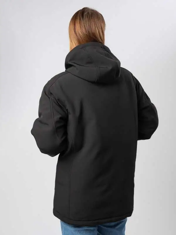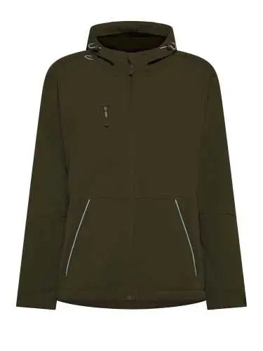 Caldissimo Softshell femminile 3 strati imbottito con cappuccio, tessuto ecosostenibile.