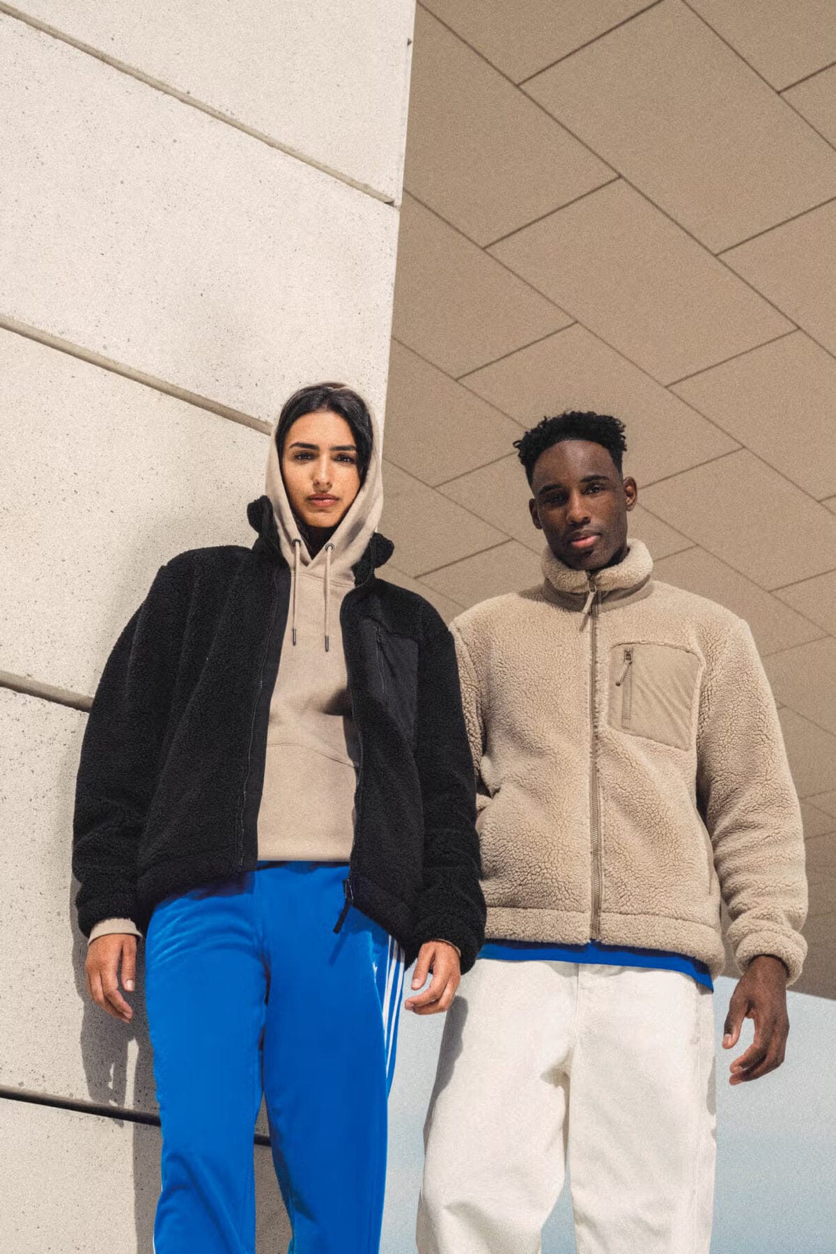 100% poliestere riciclato post-consumer. Tessuto sherpa double face, con interno in pile tono su tono. Taschino sul petto lato cuore e tasca con profilo in tessuto ripstop a contrasto nei colori Wet Sand/Driftwood e Forest Khaki/Dark Forest Khaki, tono su tono per il colore Black. Inserto interno colletto e nastro copricuciture. Zip a contrasto nei colori Wet Sand/Driftwood e Forest Khaki/Dark Forest Khaki, tono su tono per Black. Zip in plastica riciclata al centro sul davanti e taschino sul petto, con tirazip nel tessuto principale e cursore in metallo. Finitura con pattina interna centrale sul davanti. Fondo manica e fondo capo con elastico invisibile. Interno del collo in tessuto sherpa e asola dietro al centro per appendere il capo.