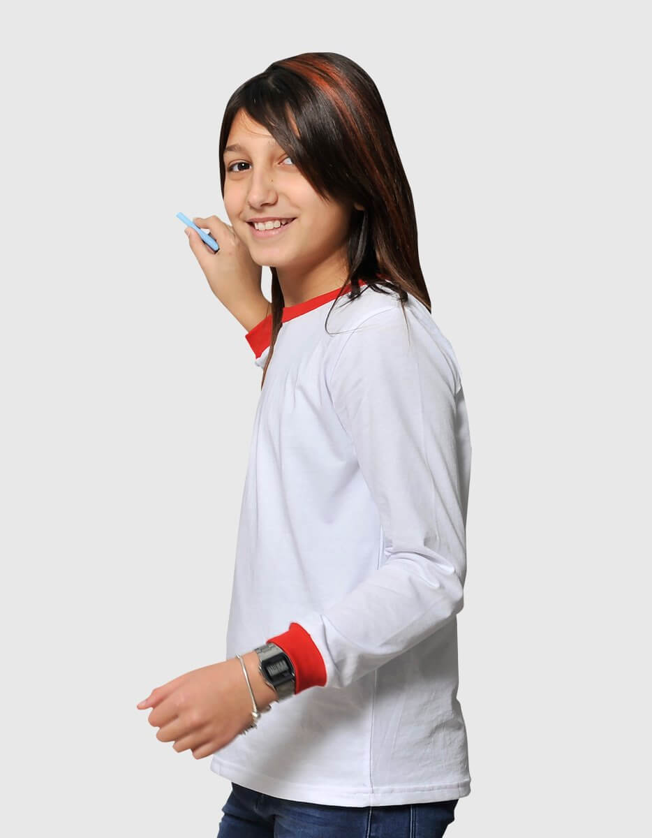 La variante a maniche lunghe della maglietta bambino ringer, rigorosamente Made in Italy.