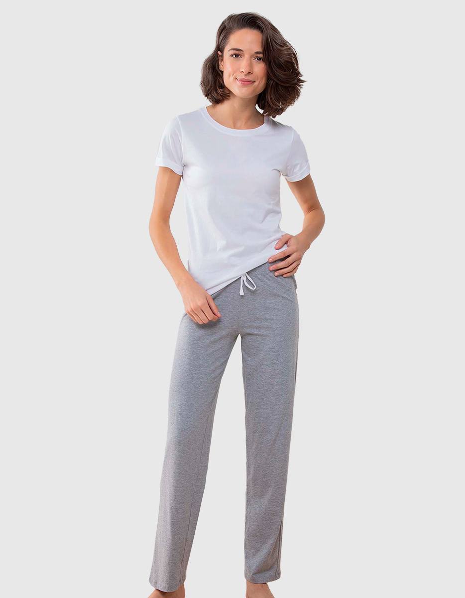Pantaloni e sacca con coulisse in colore grigio melange (85% cotone 15% viscosa).