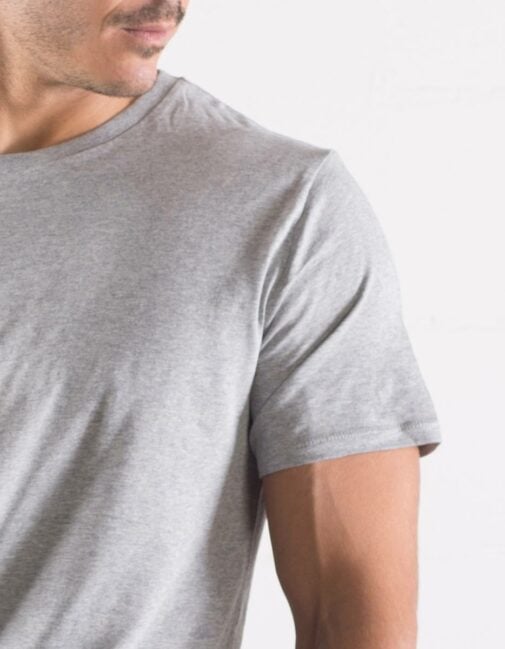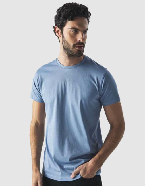 T-shirt manica corta, girocollo con nastro di rinforzo e morbida bordatura, struttura con cuciture laterali, vestibilità moderna, senza etichetta, solo una piccola etichetta taglia.