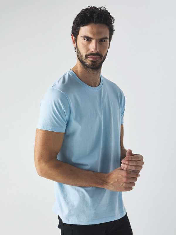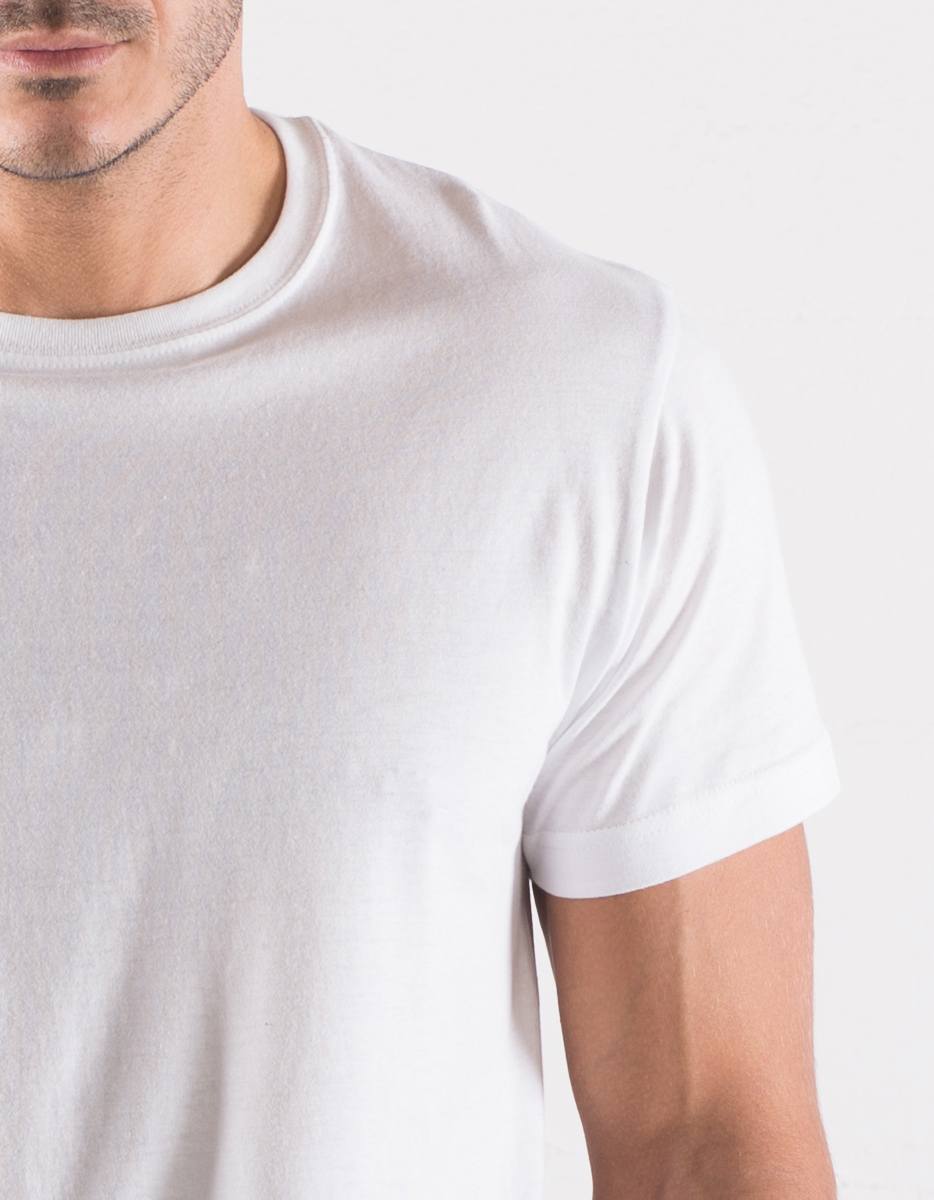 Maglietta a maniche corte, collo basso con cucitura a doppio ago dal taglio sottile e moderno.