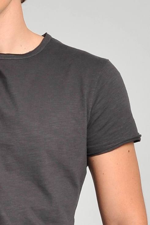 Vestibilità alla moda, con collo e manica rifiniti a taglio vivo
