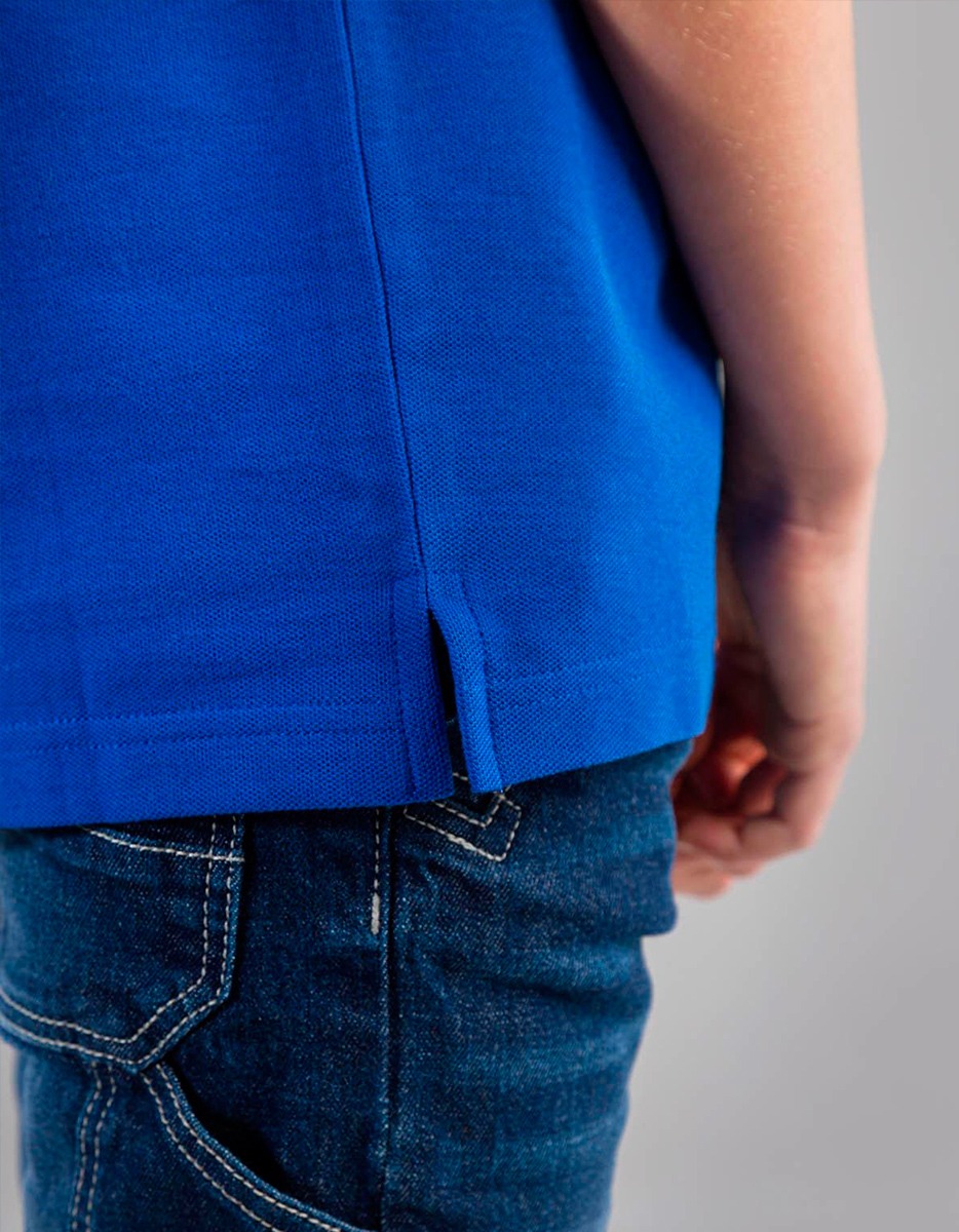 Polo per bambino realizzata in 100% cotone piqué*, colletto con 2 bottoni tono su tono e nastro di rinforzo al collo.