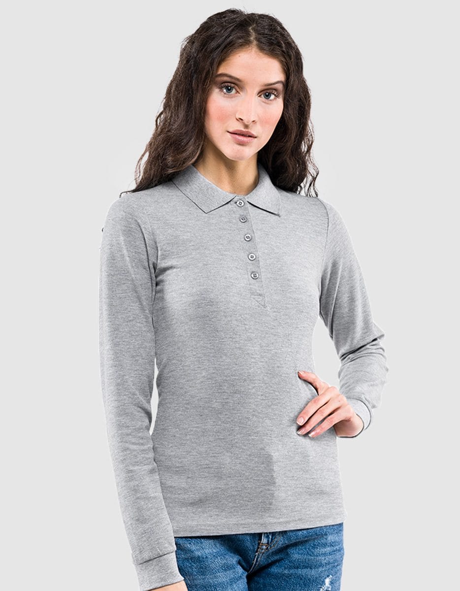 Polo da donna con maniche lunghe, dal taglio comodo e leggermente sfiancato. Realizzata in tessuto 100% cotone* piquè. Colletto con apertura a 6 bottoni tono su tono. Parasudore da spalla a spalla. Spacchetto laterale sul fondo. Etichetta strappabile.